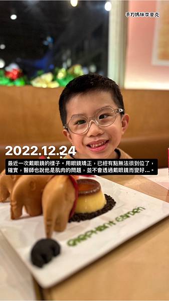 #先天性斜視 (遠視200)。基於度數(遠視200)+視力沒問題的狀況下,我們選擇先暫時配眼鏡做斜視矯正。